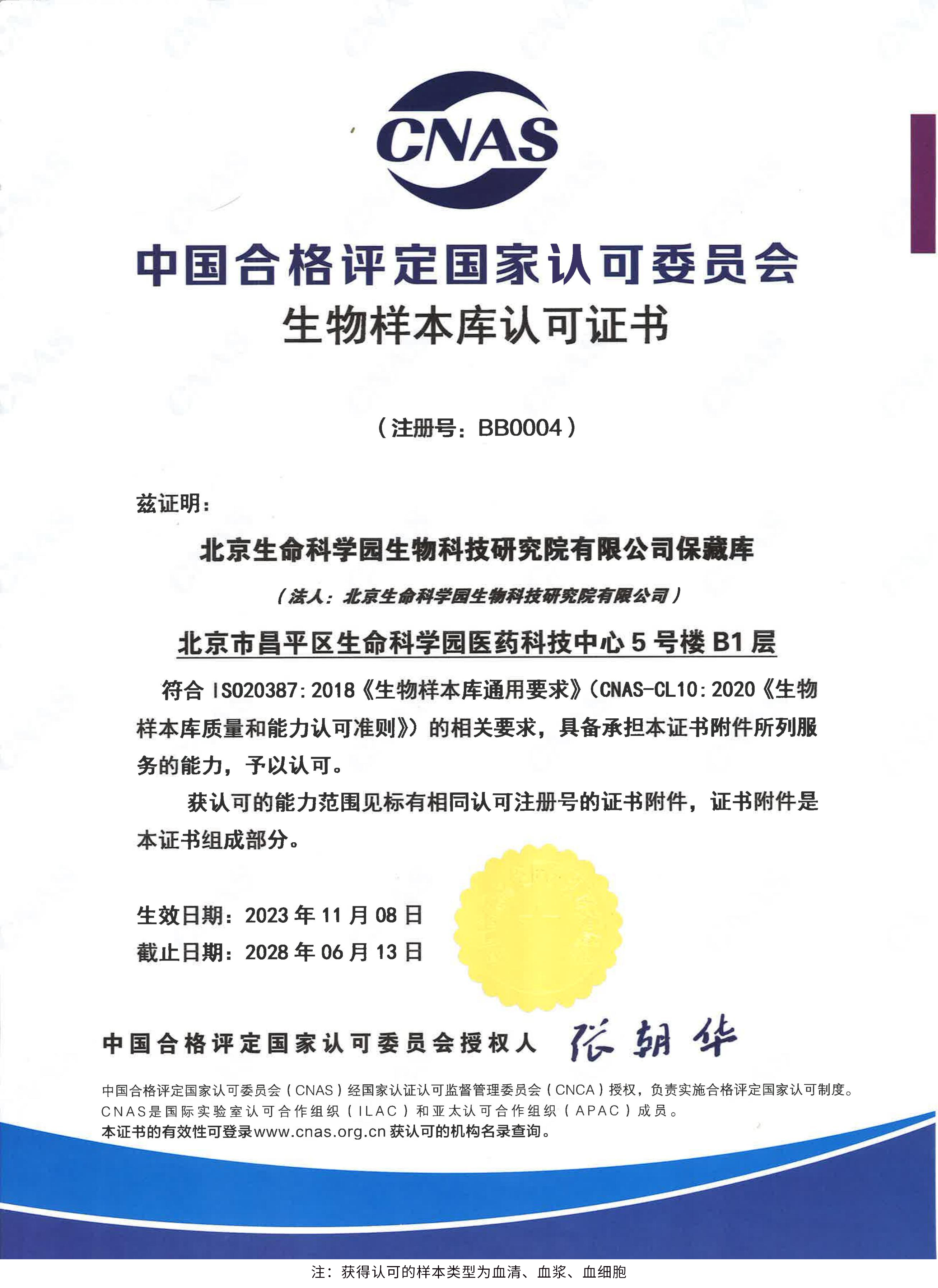 北京生命科學(xué)園生物科技研究院(以下簡(jiǎn)稱“北京生物樣本資源庫(kù)”)(Biobank of Life Science Park,簡(jiǎn)寫“BoLSP”)是一家由北京市科委和中關(guān)村生命科學(xué)園共同支持設(shè)立的第三方生物樣本庫(kù)公共服務(wù)平臺(tái),秉承北京重大疾病臨床數(shù)據(jù)和樣本資源庫(kù)(以下簡(jiǎn)稱“北京庫(kù)”)(Beijing Biobank of Clinical Resources,BBCR)十余年的發(fā)展成果,聚合眾多臨床樣本專家的專業(yè)共識(shí),致力于在生命科學(xué)、生物醫(yī)藥研究領(lǐng)域發(fā)揮銜接樣本資源持有者與研究者的橋梁作用,解決生物樣本資源開發(fā)上下游信息不對(duì)稱、資源共享困難等問題。研究院在北京中關(guān)村生命科學(xué)園昌平園區(qū)建立了2000㎡生物樣本庫(kù),最大存儲(chǔ)規(guī)模達(dá)1000萬份。研究院遵循CNAS-CL10:2020《生物樣本庫(kù)質(zhì)量和能力認(rèn)可準(zhǔn)則》,同時(shí)結(jié)合北京庫(kù)過去十年的工作經(jīng)驗(yàn)與教訓(xùn),建立了一套完善的生物樣本保藏質(zhì)量管理體系,從人、機(jī)、料、法、環(huán)、控多個(gè)角度,實(shí)現(xiàn)生物樣本保藏過程的全面質(zhì)量控制,先后獲得國(guó)家科技部頒發(fā)的人類遺傳資源保藏行政許可證書和中國(guó)合格評(píng)定國(guó)家認(rèn)可委員會(huì)(China National Accreditation Service for Conformity Assessment,CNAS)頒發(fā)的“CNAS認(rèn)可證書”。